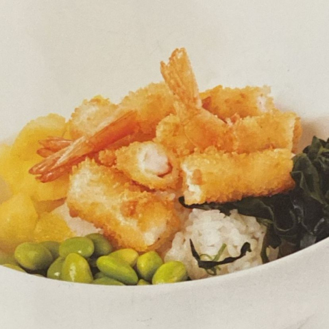 pesce bianco , fragola , edamame , avocado , goma wakame , cipolla fritta , tobiko , salsa piccante