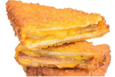 Fettine di pane ripiene di cheddar e bacon, fritti a regola d'arte. 3 pezzi