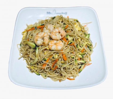 Pasta fresca asciutta, carne di suino macinata, carote, germogli di soia, cetriolo, salsa di fagioli e soia