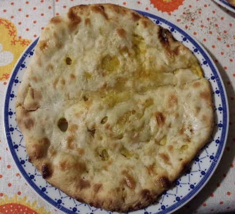 Vegetable pakora, kheera raita, stuffed paratha, paneer jal frizi, spinaci in padella con legumi e desser a scelta (specificare nelle note)