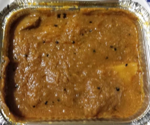 Lagumi gialli indiani cotti a vapore con spezie indiane, salsa di pomodoro, coriandolo e zenzero