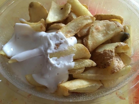tutti serviti nel loro panino con contorno di patatine fritte rustiche