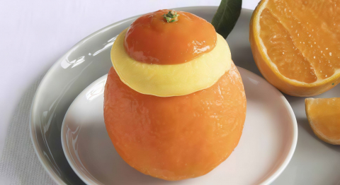 Un profumato guscio di mandarino ripieno di sorbetto al mandarino tardivo di Ciaculli