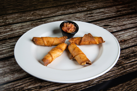 Tre tortillas di grano farcite con manzo, pico de gallo, guacamole, salsa thousand island, insalata, servito con chips di mais