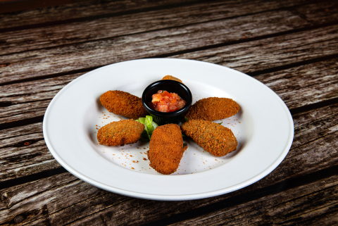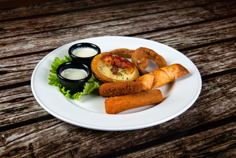 Antipasto misto composto da onion rings, potato skin, cheese stick, chili popper, N.Y. tube