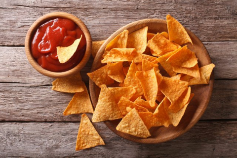 Chips di mais ricoperte di formaggio fuso, purea di fagioli e pico de gallo. a scelta con formaggio fuso oppure da comporre e scaldare al microonde