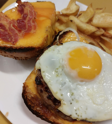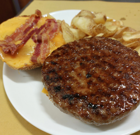 hamburger di agnello(170gr) , bacon irlandese , salsa stout , cheddar