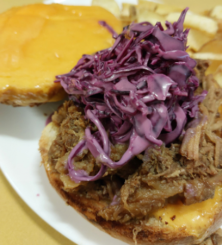 Maiale sfilacciato e marinato alla guinness (pulled pork) e cheddar irlandese