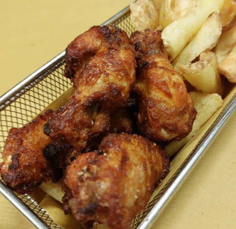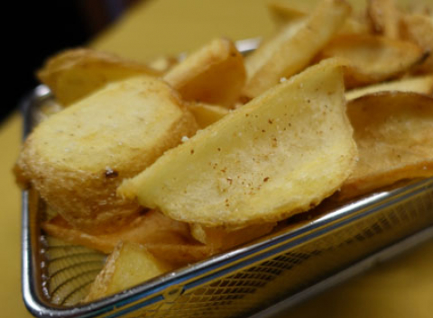 Le nostre fantastiche patate fritte* con la buccia. Il prodotto è gluten free, ma l'olio in cui viene fritto può contenere contaminazioni
