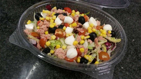con ogni insalata una focaccia e una bottiglietta di acqua in omaggio